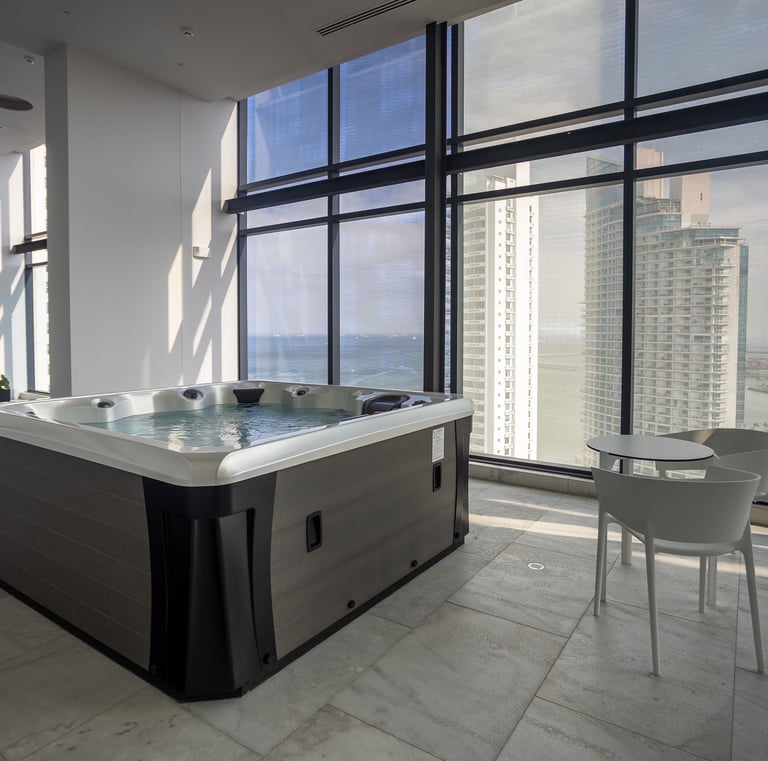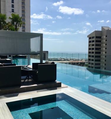 El área social de Passage es estilo resort: piscina infinita en el rooftop deck con vista 360 grados hacia el Canal de Panamá, el Puente de Las Américas y el Océano Pacífico. Área barbacoa, gimnasio, hot & cold Spa, jacuzzi, fitness center, lounge room y kids área, área comercial con farmacia, tienda para mascotas, cafetería, supermercado, alquiler de bicicletas.